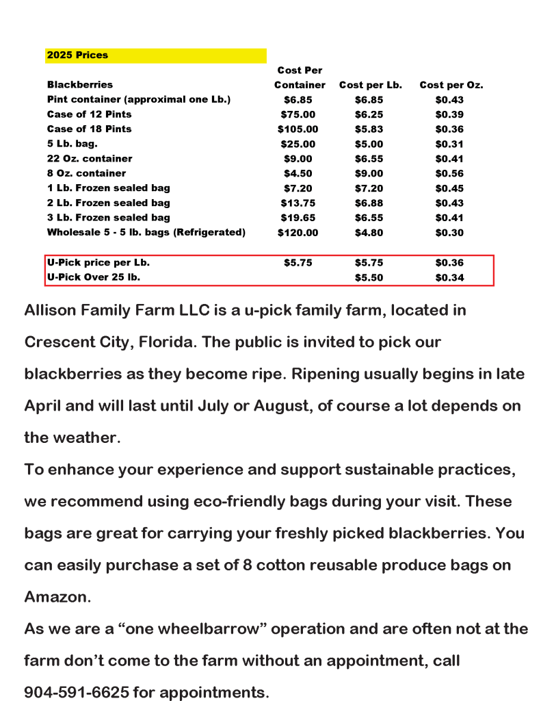 At Allison Family Farm, our blackberry fields are one of the true gems of our farm. Grown with care and sustainable farming practices, our blackberries are known for their rich flavor, plump size, and natural sweetness. Whether you’re picking them fresh off the vine or enjoying them in our homemade jams, syrups, and baked goods, our blackberries bring the taste of summer to your table.
