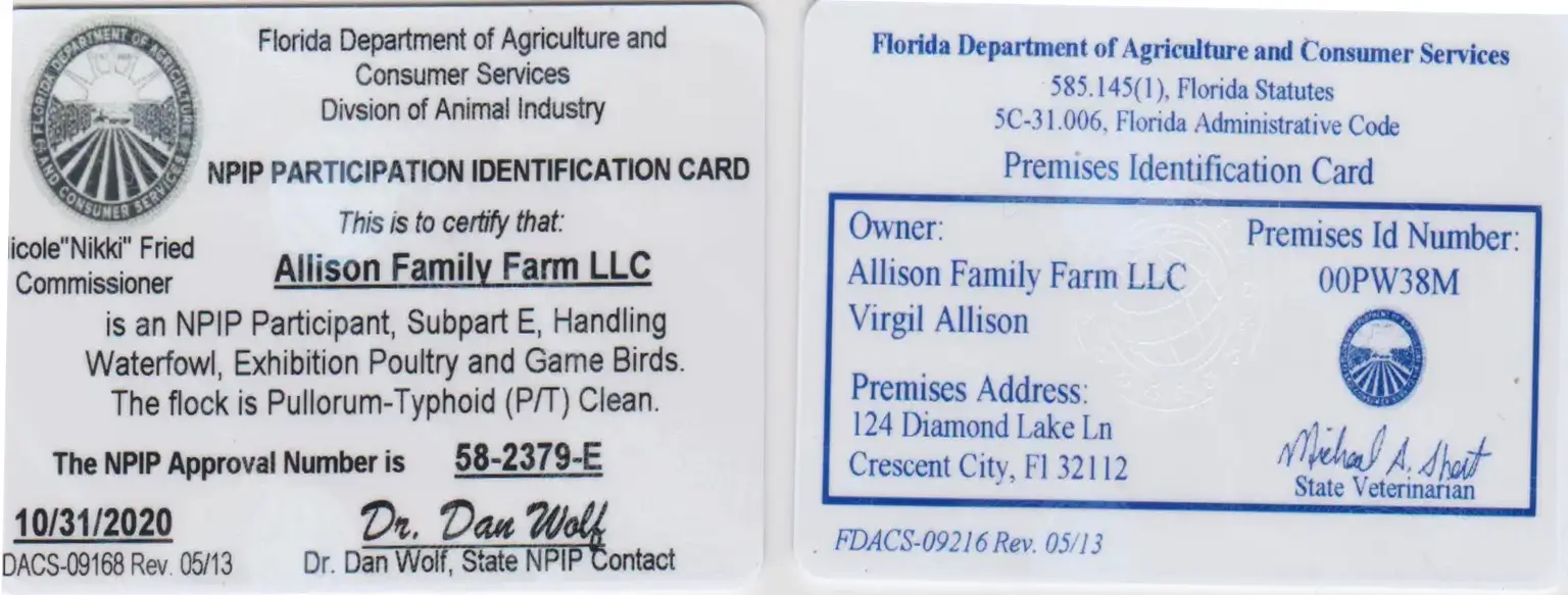 Our turkeys are regularly inspected for disease, by the Florida Wildlife Commission